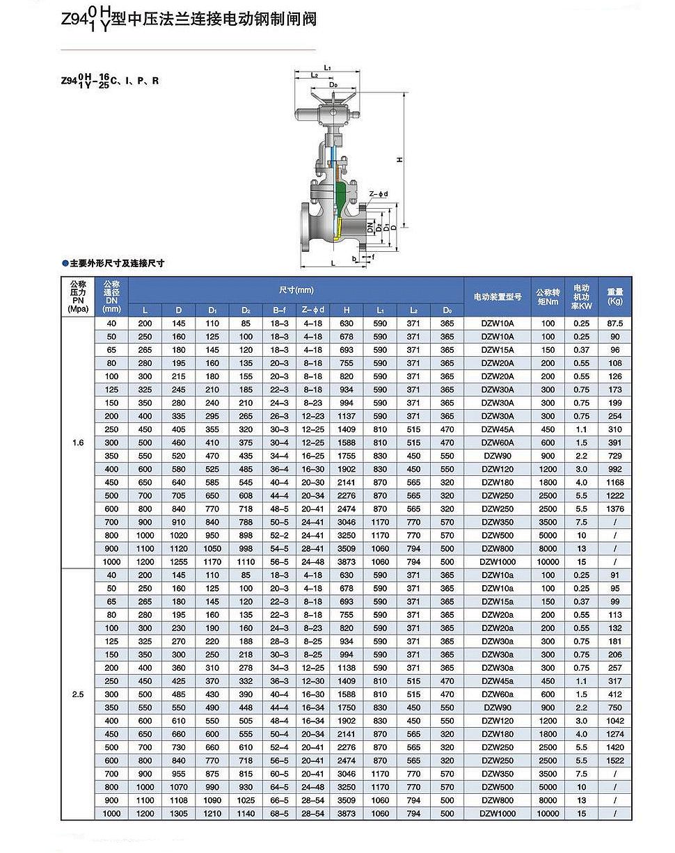 - Z940/1H/Y電動中壓法蘭連接閘閥
